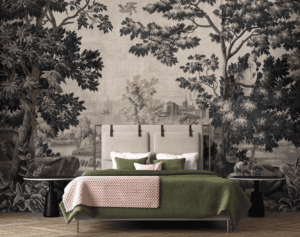 Ook zonder antiek exemplaar kun je de gobelin-look krijgen. In de jaren zestig was er een revival met machinaal gemaakte wandkleden (check Vinted). En nu is er fotobehang in gobelin-stijl – hetzelfde effect, maar dan op maat en betaalbaar. Een echt wandkleed? Die staat voorlopig nog op het verlanglijstje.