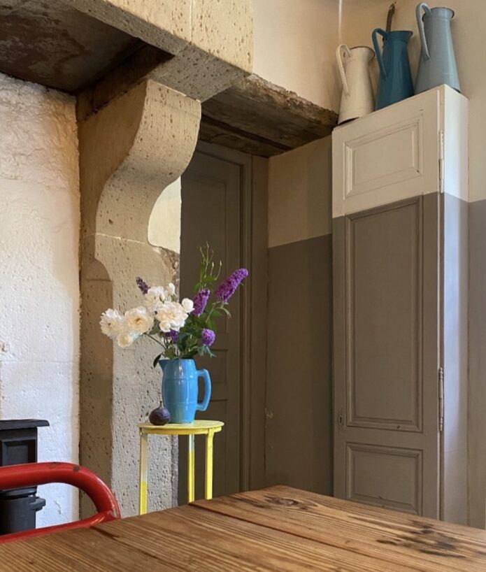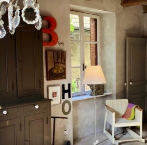The interior did not come together all at once. It grew, year by year, with finds from markets and brocante dealers in the region. ‘There is an incredible amount of beautiful furniture for sale here.’ A mix of brocante finds and design. ‘Old junk with a twist.’
